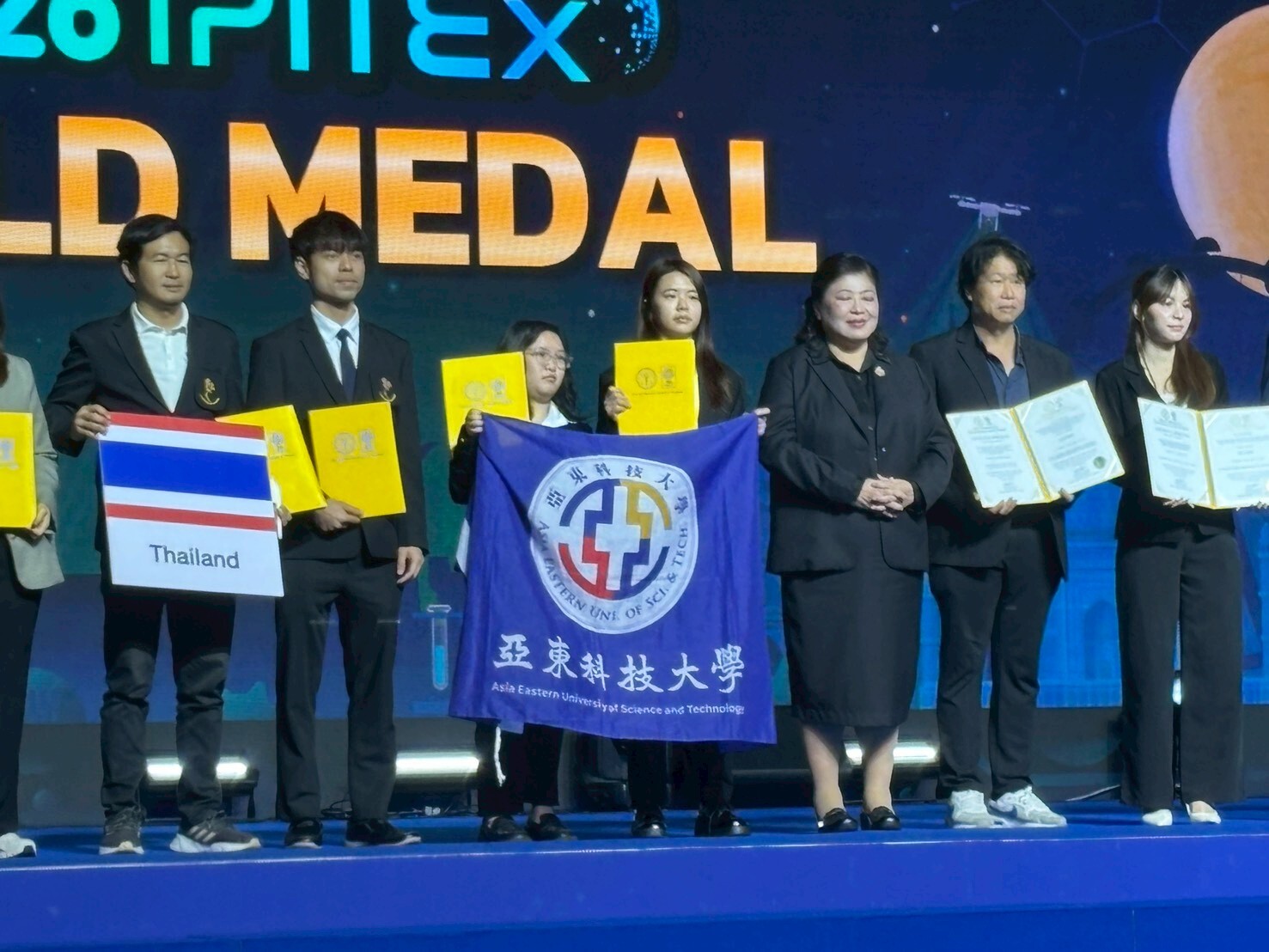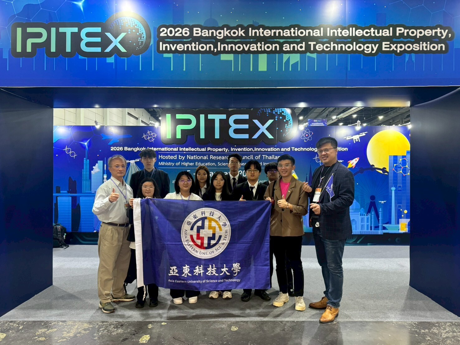 2026 曼谷國際發明展(Bangkok International Intellectual Property, Invention, Innovation and Technology Exposition, IPITEx)於 1 月 5 日至 9 日在曼谷國際貿易展覽中心(BITEC)舉行,匯聚來自全球之創新研發成果。亞東科技大學以 4 件參賽作品一舉榮獲 2 金 2 銀佳績,展現學校於智慧醫療、高齡照護與工程技術領域之研發實力,成果備受國際評審肯定。
