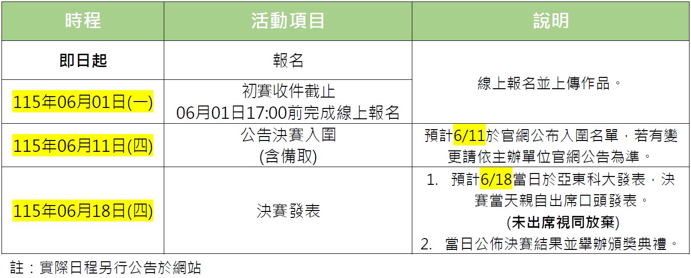 - 附件一、報名表_團隊名稱_作品名稱(請提供WORD檔)